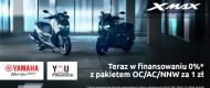 Jedne z najlepiej sprzedających się, sportowych skuterów Yamaha – modele XMAX 125 oraz XMAX 300 – dostępne są w atrakcyjnym finansowaniu wraz z pakietem ubezpieczeń OC / AC / NNW za 1 zł. To idealna chwila, żeby rozpocząć dynamiczną, miejską przygodę!